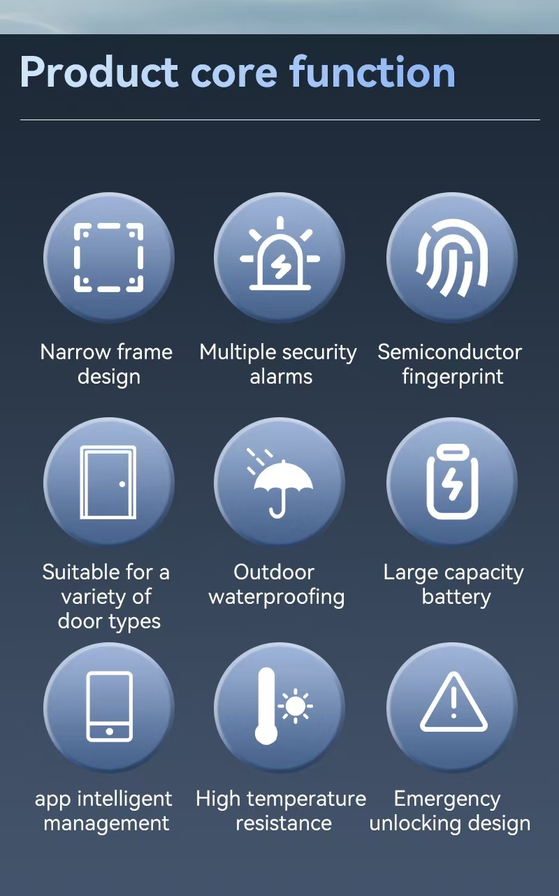 Улучшите безопасность и удобство вашего дома с помощью нашего водонепроницаемого IP65 цифрового дверного замка, интегрированного с интеллектуальными экосистемами Tuya и TTlock.универсальные методы разблокировки и интеллектуальная связьИзготовленный из высококачественного анодированного алюминия, он может похвастаться изящным дизайном и надежной работоспособностью в суровой среде.